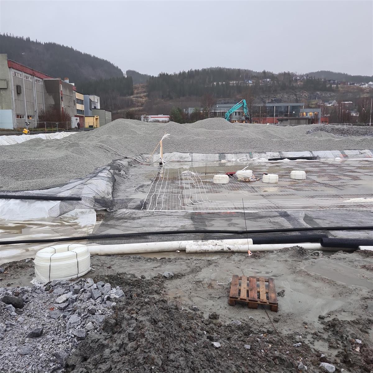 – Under skolebygget som nå er under oppføring, ligger det et to meter tykt lag av steinmel. I steinmelet har vi lagt rør for å utveksle varme med dette energilageret, forklarer fylkesråd Rånes.